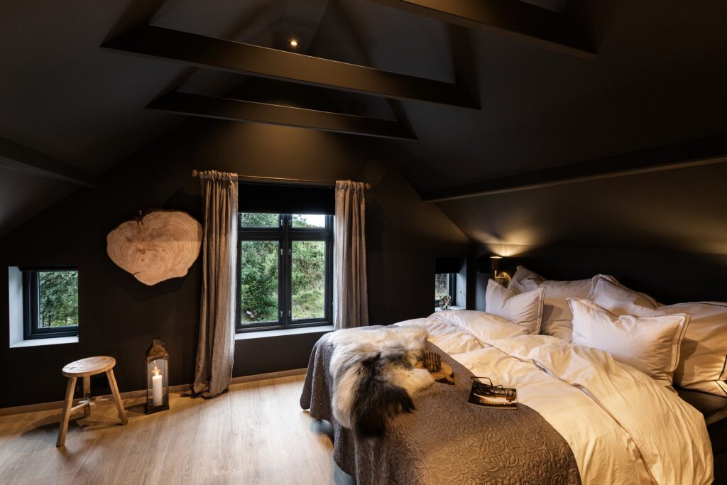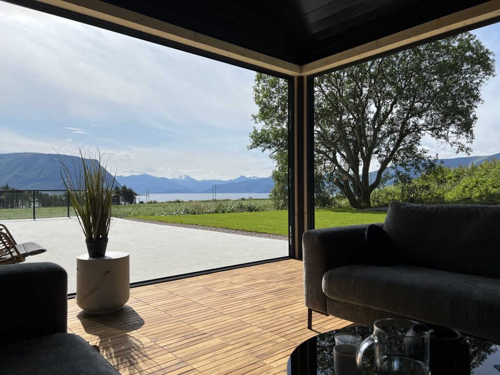 Drei Stockwerke, fünf Schlafräume, ein großzügiger Küchen-Wohnbereich und ein eigenes Fitnessstudio sind ein idealer Rahmen für Urlaube, in denen Rückzug und Gemeinschaft wichtig sind. Vom Weinkühler bis zum Jacuzzi ist alles da, was Entspannung und Genuss fördert. Der Blick schweift durch hohe Sprossenfenster über die Weite der bis heute aktiv bewirtschafteten Felder rund um die Lodge und auf die Anhöhen des Godøfjellet. Ob Tageswanderung, Kajaktour oder eine Runde auf dem Surfbrett: Genauso schnell, wie man vom Flughafen Ålesund die Lodge in gerade mal 20 Minuten erreicht, ist man mittendrin in allen erdenklichen Outdooraktivitäten.