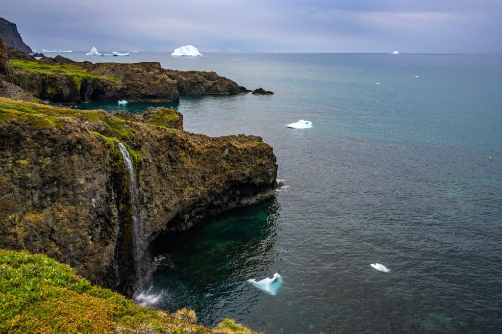 Wer sich eher vom Grün als vom Weiß angezogen fühlt, der kann in Qeqertarsuaq aber auch eine ausgedehnte Küstenwanderung nach Kuannit starten. An der Arktis-Forschungsstation vorbei ist bald der Fluss Røde Elv erreicht. Ein bisschen abseits vom Weg findet sich ein riesiger Felskessel, in den tosend der Qorlortorsuaq-Wasserfall hineinstürzt. Wenn der Pfad sich schließlich hoch über dem Meer an der Steilküste entlang schlängelt, dann lohnt es sich, in der Tiefe nach ausgewaschenen Brandungstoren, Basaltskulpturen und atemberaubenden Lavafelsformationen Ausschau zu halten. Wasserfälle stürzen sich hier und da direkt in die See, während neongrüne Moosteppiche die Schritte dämpfen und man aufpassen muss, dass man sich im übermannshohen Wald der Engelwurz-Dolden nicht verläuft. Ein mystisch anmutendes Märchenland, bei dem es einen nicht wundern würde, wenn einem ein Zwerg, eine Fee oder ein Elf über den Weg liefe.