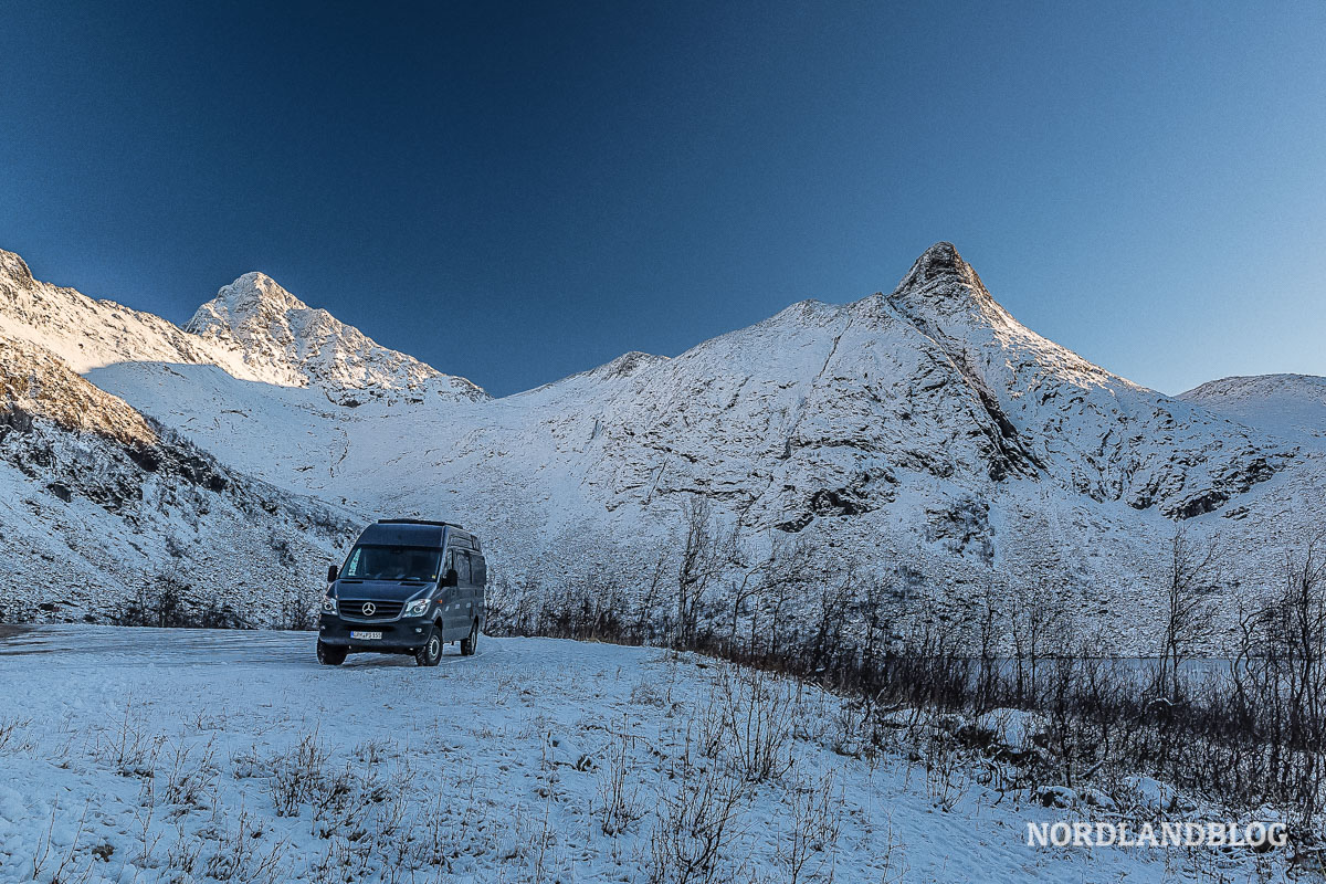 Wenn nach einem angsteinflössenden Herbststurm das Meer nur wenig später wieder ganz still liegt und sich dann das bunte Laub der Bäume in warmen goldenen Farben darin spiegelt, die Tage bereits deutlich kürzer werden, der Morgennebel über den Bergseen im ersten Tageslicht leuchtet und sich am Abend in der Dämmerung ein erstes flackerndes Nordlicht erahnen lässt, dann ist es für uns in Skandinavien am schönsten. Der perfekte Zeitraum für eine Reise mit dem Kompass auf Norden – den Zugvögeln und dem Herbst entgegen, der sich unaufhaltsam in Richtung Süden ausbreitet. So brechen wir mit unserem Kastenwagen auf, um in dieser Zeit die Inseln der Lofoten, der Vesterålen und Senja zu besuchen.