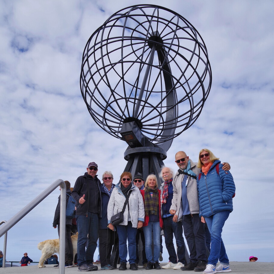 Aber das Charisma des 307 Meter steil aufragenden Kaps ist eben unschlagbar und zeigt sich beim Besuch der Nordis- Leserreisenden von seiner besten Seite: ein heller Sommertag, malerische Wolkenstrukturen am Himmel, fast windstill und vor allem ist es für die zweite Juliwoche ein sehr ruhiger Tag, auch wenn vornehmlich italienische Radfahrer die ikonische Weltkugel als Fotohintergrund mit ihren Rädern belagern – aber das muss man ihnen auch anerkennend gönnen.