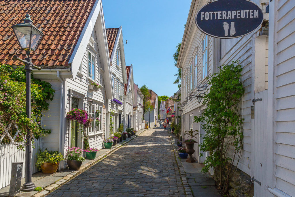 TIPP 3: Ein Bummel durch die pittoreske Altstadt „Gamle Stavanger“ mit ihren weißen Holzhäusern. Tipp: am schönsten ist es dort, wenn kein Kreuzfahrtschiff vor Anker liegt.