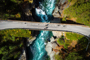 Der Weg zum Harteigen gestaltet sich schwierig. Zwischen uns und dem Berg klafft eine Schlucht, in deren Tiefe ein Gletscherfluss sich seinen Weg bahnt. Wir laufen entlang des Abgrunds, bis der Berg abfällt. Doch am Ende der Schlucht ergießt sich der Fluss in einen türkisen See, zu groß und tief, um ihn zu überqueren. In der Ferne kann man sehen, dass der See wieder zwischen zwei großen Felsmassiven verschwindet. Wir wollen uns gerade auf den Weg machen, auch diesen Fels zu überwinden, als uns eine Stelle kurz vorm Ende des Sees auffällt. Das Wasser ist hier noch mal besonders breit, bevor es sich wieder zu einem Fluss zusammenfindet. Weil das Wasser sich jedoch auf die Breite verteilt, ist es auch sehr flach, an vielen Stellen schauen sogar Trittsteine heraus. Wir beschließen, unser Glück an dieser Stelle zu versuchen.
